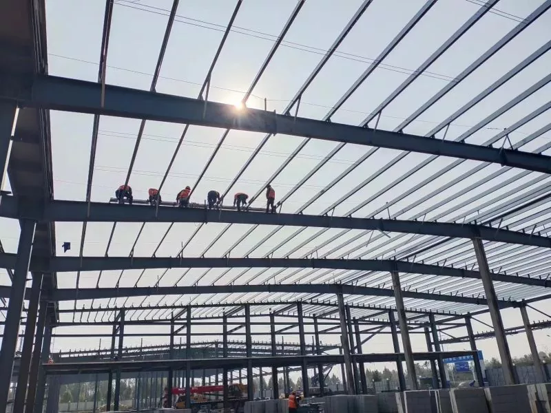 ຄໍາຕອບ: ສາງຜະລິດຕະພັນໂຄງສ້າງເຫຼັກສະບັບແມ່ນຖືກທໍາລາຍໂດຍປົກກະຕິໃນໂຮງງານແລະຫຼັງຈາກນັ້ນສົ່ງໄປທີ່ສະຖານທີ່ກໍ່ສ້າງສໍາລັບສະຖານທີ່. ຂະບວນການກໍ່ສ້າງກ່ຽວຂ້ອງກັບການຕັ້ງສະຫນາມເຫຼັກ, ທ່ອນໄມ້, ແລະຫລັງຄາແລະຫລັງຄາໃນພື້ນຖານ, ຕາມດ້ວຍການຕິດຕັ້ງແຜງກໍາແພງແລະຫລັງຄາ.