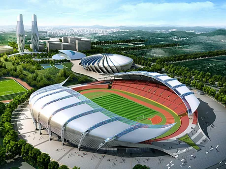 ສູນການແຂ່ງຂັນຂະຫນາດໃຫຍ່: ສູນກິລາໂຄງສ້າງທີ່ສໍາເລັດຮູບແມ່ນສະລັບສັບຊ້ອນທີ່ເຮັດວຽກຫຼາຍທີ່ເຮັດວຽກຫຼາຍສະຖານທີ່ມີຄວາມຍືດຫຍຸ່ນໂດຍຜ່ານການອອກແບບທີ່ບໍ່ມີຕົວຕົນ.